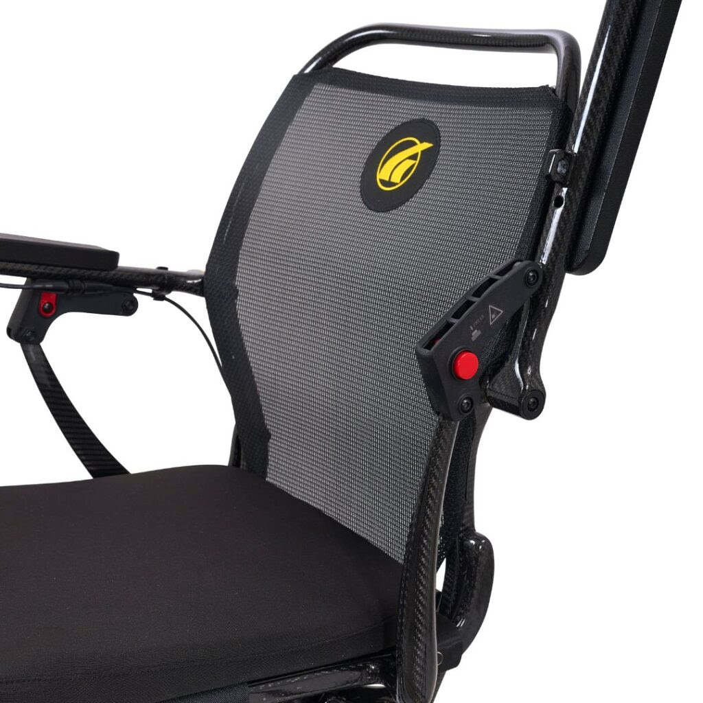 The Cricket Power Wheelchair is stylish, agile, and extremely portable. Crafted with an incredibly strong yet lightweight 100% carbon fiber frame, the Cricket weighs as light as 33 lbs. making travel a breeze! The slim sporty design is perfect for navigating indoors and out while sightseeing, shopping, or dining.