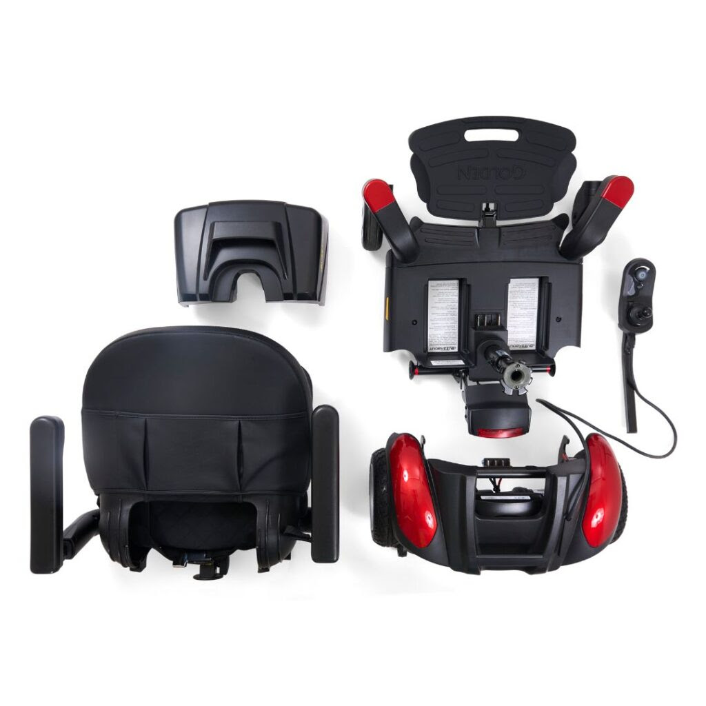 The new Buzzaround CarryOn folding power wheelchair is truly in a class all by itself! This unique power chair is super portable with a 21” turning radius and center wheel drive for optimal control and maneuverability making it the perfect partner for your next adventure. FDA Class II Devices Designed by Golden are intended to assist persons with physical disablements.